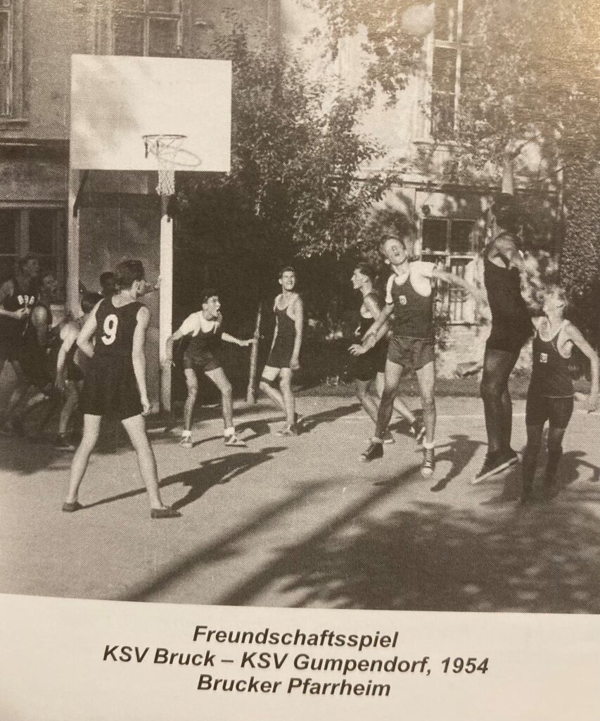 Am 6 Dezember 1954 bei der Hauptversammlung des NBBV zeigen sich 10 Vereine an Basketball interessiert, darunter der KSV Bruck/Leitha. Im ersten Vorstand scheinen Edmund Dworak als Präsident und Prof. Hajda als 2. Sportwart auf.